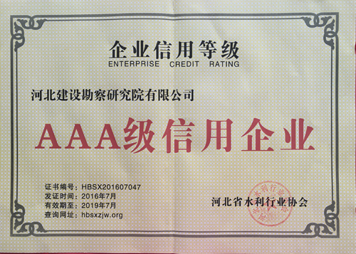 近日,公司被河北省水利行業協會評為AAA級信用企業。