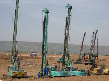 我公司共完成了5#機組配套的主廠房、煤倉間、主變、升壓站架構、鍋爐補給水間、爐前兩機公用其他設施地基處理。地基處理采用干作業旋挖鉆孔灌注樁,共完成φ900灌注樁727根,φ800灌注樁584根,φ650灌注樁246根,混凝土19573.5m3。