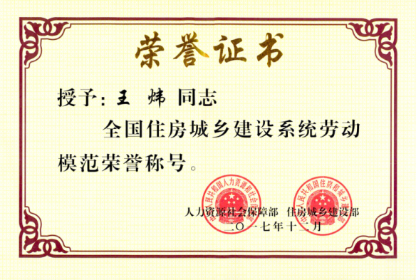 為進一步激勵全國住房城鄉建設系統廣大干部職工的積極性和創造性,努力推動住房城鄉建設工作上新臺階,人力資源社會保障部、住房城鄉建設部在全國住房城鄉建設系統內,開展了先進集體和先進個人的評選活動。通過逐級推薦,由人力資源社會保障部和住房城鄉建設部最終審定,決定對197個先進集體,381名先進工作者,414名勞動模范進行表彰。我公司工會主席王煒同志榮獲全國住房城鄉建設系統勞動模范榮譽稱號。