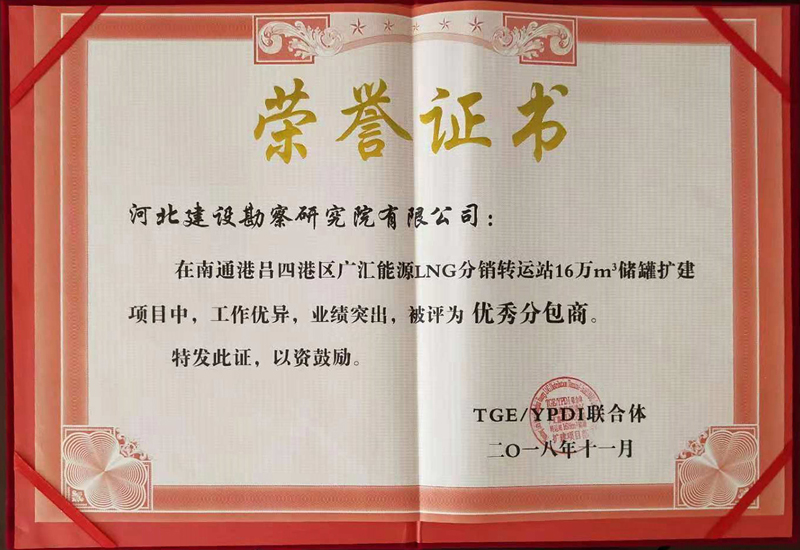我公司獲廣匯能源LNG項目“優(yōu)秀承包商”證書