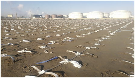 盛虹煉化一體化項目原油、成品油罐區地基加固工程位于連云港市徐圩新區石化功能區,陬山三路以西,陬山二路以東,港前大道以北,海濱大道以南,與現連云港榮泰倉儲罐區毗鄰,地貌類型為沖海積平原區,地勢較平坦,場區原為漁塘,內部溝河縱橫,且溝、河之間貫通性差。