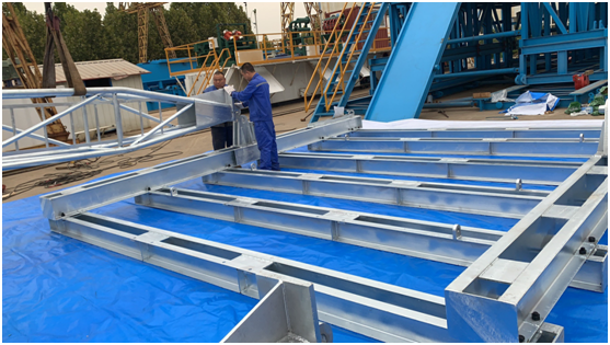 河北建勘鉆探設備有限公司為日本金泉株式會社研制的A25-50/1.5(RESORT 21HD)熱鍍鋅鉆塔,已經全部安裝調試完成,2019年10月17日,日本內田金泉株式會社的總經理內田米房一行來到河北建勘鉆探設備有限公司,對銀光閃閃的鉆塔外觀質量、安裝過程、基本參數進行了檢查驗收,對鉆塔設計制造綜合技術指標評價滿意,順利通過日方驗收。