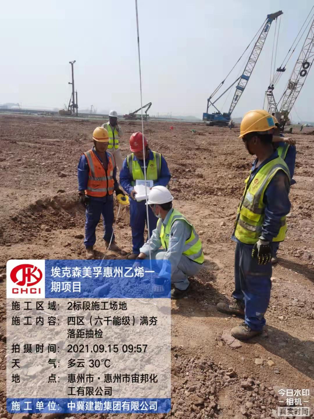 本工程位于廣東省惠州市。受埃克森美孚(惠州)化工有限公司委托,我公司承擔強夯施工項目。本項目主要施工內容為現場夯點的布置、現場夯點的測放、夯機的就位、夯坑的驗收及夯坑的回填、滿夯的控制、滿夯后整個場地的整平及驗收。其中4000KN·m強夯面積27866㎡,6000KN·m強夯面積334533㎡,8000KN·m強夯面積32090㎡。