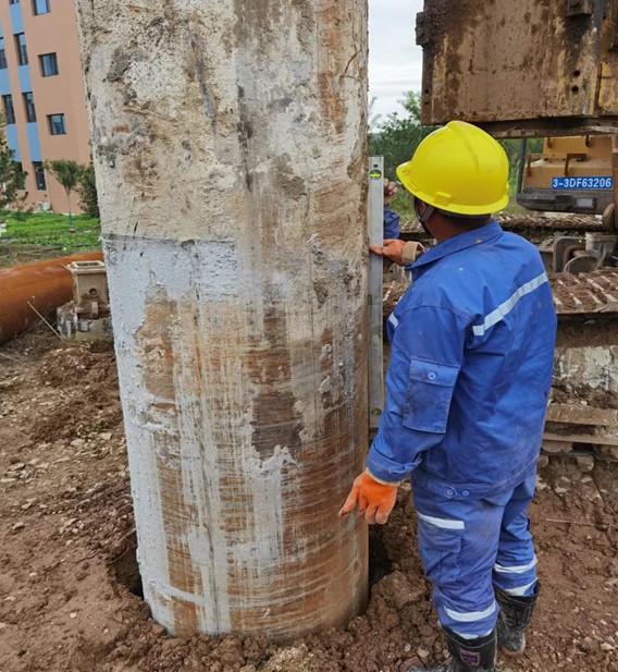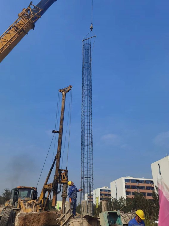 本項目位于河北邯鄲永年縣,受河北永洋特鋼集團有限公司委托,我公司承擔本項目樁基施工。基礎采用混凝土灌注樁,工程內容為全套管旋挖機械成孔、清運余土(渣土)、鋼筋籠制作及安放、混凝土澆筑、鑿樁頭、清運及場地平整。工作量為樁徑800mm混凝土灌注樁174根。