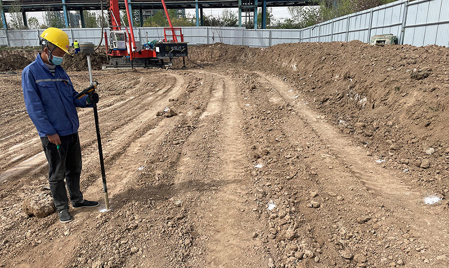 本工程自2022年4月19日開工,2022年6月18日完工,包含CFG樁施工,樁間土開挖及外運,截樁頭,樁基檢測,褥墊層施工和工程降水。其中鑄造車間共有CFG樁約900根,樁徑為500mm,有效樁長為14.5-15.0m,土方開挖及外運約1200m³,樁間土開挖及外運約2500m³,褥墊層鋪設約680m³;2萬噸聯合法車間共有CFG樁約3900根,樁徑為500mm,有效樁長為13m,土方開挖及外運約8000m³,樁間土開挖及外運約4400m³,褥墊層鋪設約2500m³。