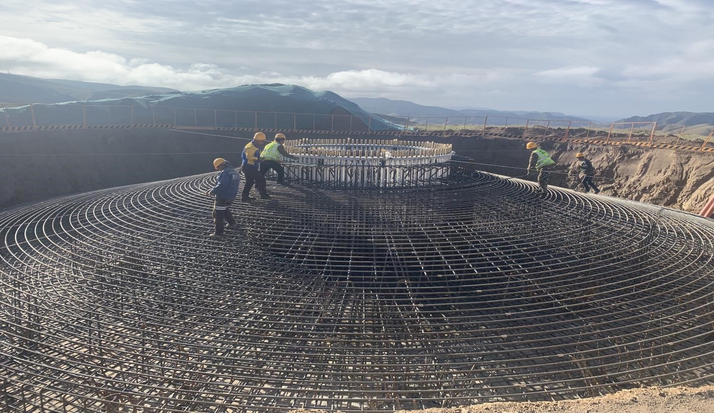 本項目采用了可更換基礎預應力錨栓組件,解決了傳統的埋入式基礎環,預應力錨栓抗疲勞性能差,應力不均勻,不方便后期錨栓組件維修保養等問題。由于每個風機基礎混凝土用量較大,屬于大體積混凝土澆筑,為防止產生混凝土裂縫,我們嚴格控制混凝土澆筑過程中的溫度和混凝土養護過程中內外部溫差。同時,預應力錨栓組件、錨栓的垂直度和錨板的水平度控制是直接影響風機塔筒穩定性的關鍵因素,施工難度大。