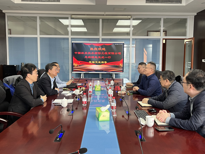 12月27日,中國航空技術國際工程有限公司總經理趙玉成一行蒞臨集團公司進行高層溝通交流。集團公司董事長李華偉、副總經理劉利平、二公司經理張良、經營科科長龐冬偉出席座談交流。