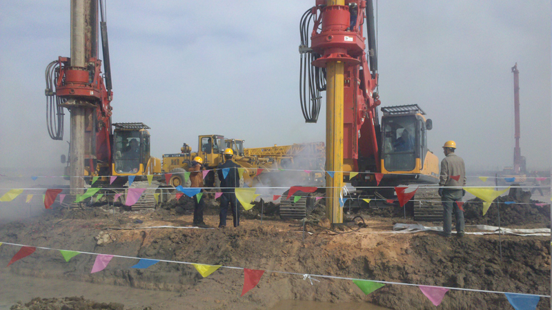 施工內容包括:灌注樁鋼筋籠制作、運輸及安放,鉆孔樁成孔、商品砼采買、砼灌注等工作。我公司采用旋挖鉆機成孔,樁數總計906根,樁徑600mm,樁身混凝土強度等級C35,灌注混凝土9103m3。