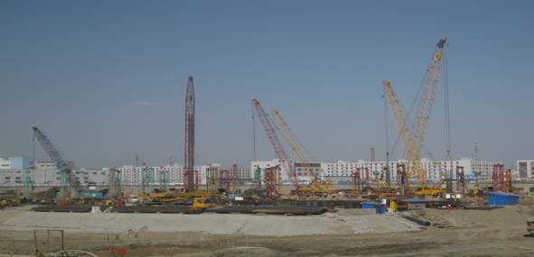 我公司采用泵吸反循環鉆機成孔施工工藝,共完成樁徑1.0m,樁長76.6-98.75m工程樁271根,制作安裝鋼筋籠約4600t。該工程創造了幾項國家和世界之最:民用建筑工程樁水下澆筑混凝土之最:C55;民用建筑工程樁鋼筋規格之最:直徑50mm三級鋼;民用建筑工程樁長細比之最:121:1。本工程樁孔垂直度要求控制在1/200以內,采用100%超聲波檢測,施工中制定了預防孔斜技術措施,保證了成孔質量。