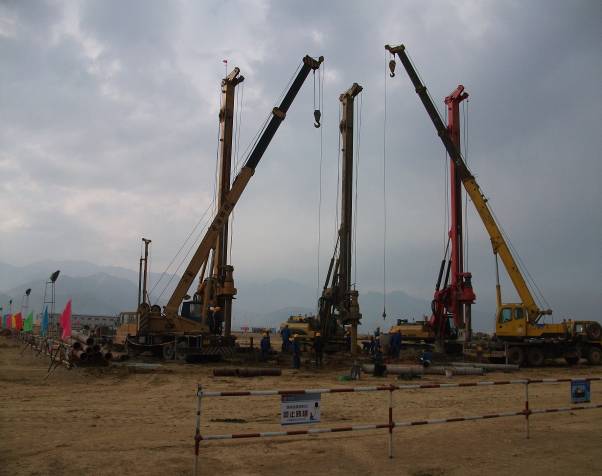 本工程累計完成混凝土灌注樁9761根,完成理論方量多達287000立方,強夯完成30000 平米。其中灌注樁樁徑有1200mm、1000mm、800mm、650mm、600mm五種樁型。大部分為端承樁,部分為摩擦端承樁。圖紙設計主筋直徑有12-28mm不等,混凝土標號為C25-C35不等。